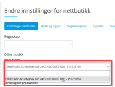 Choose the correct department in the dropdown menu under Diller store (must be created in Diller first)