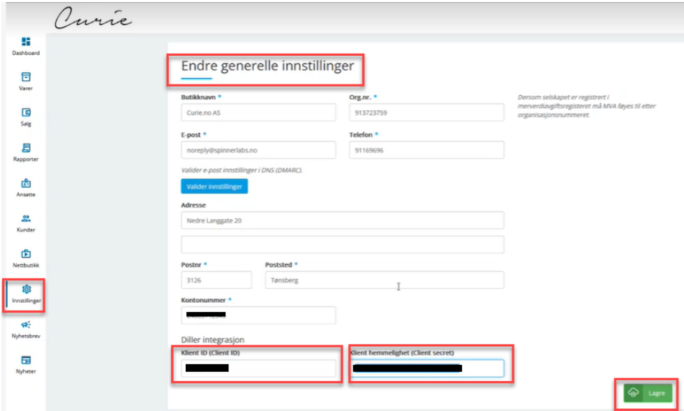 Enter the "Client ID" and "Client Secret" that you get from Diller