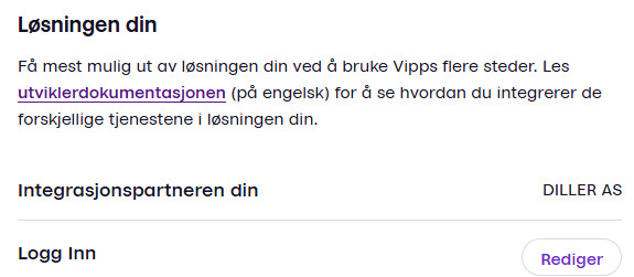 Steg 2. Når den er aktivert fra Vipps Mobilepay så må du aktivere "Logg inn" løsningen i Vipps portalen.